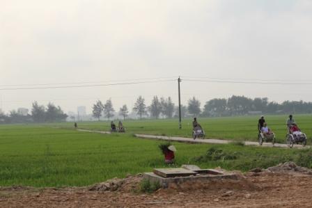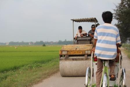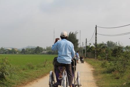 | Over soms onverharde paden | Marijke had een hele conversatie met haar fietsboy, hier laat ze hem een Tic-Tac proeven | En dan weer dwars door de rijstvelden |