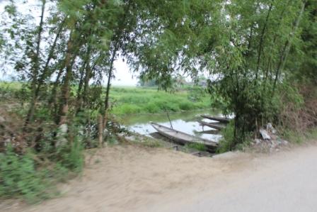 | De parfumrivier richting Hoé | Oud houten vrachtscheepje, nog steeds in gebruik | de was aan de slootkant op een prachtig gedecoreerde stoep |