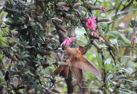 Koperglanskolibrie op de Barnadesia arorea - Ecuador Papallacta hooglanden 16 september 2013