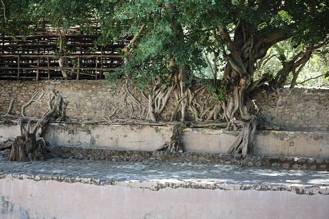 Warka vijgen of wurgvijgen, groeien in Gondar, Ethiopië, langs de muren van de kades rond het