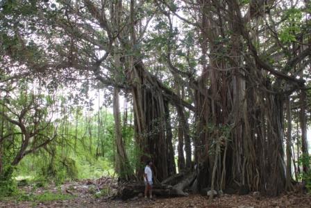 De Indiase banyan (Ficus benghalensis) is een boom die zo groot is dat het van veraf lijkt op een klein bos.