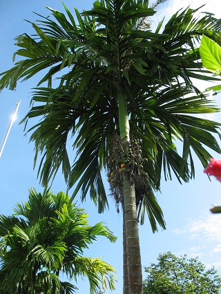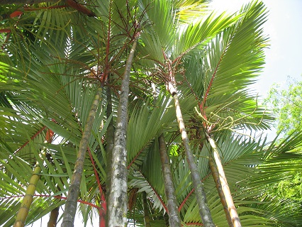 Cyrtostachys renda, de Lippenstiftpalm of rode zegelwaspalm wordt zo genoemd vanwege de felrode delen op de bladnerven en de, tot 6 meter hoge, stammen.