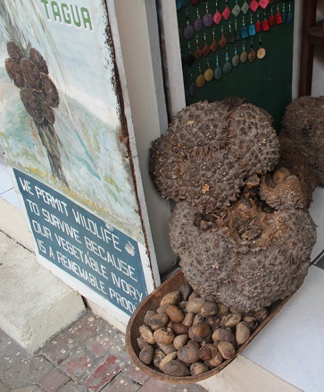 olie en voor het maken van sieraden van Tagua, ofwel plantaardig ivoor.