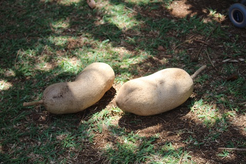 De vruchten zijn reusachtig, worstvormig, tot 1 m lang en 18 cm dik,