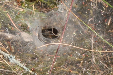 Trechterspinnen maken een horizontaal, slordig geweven web,