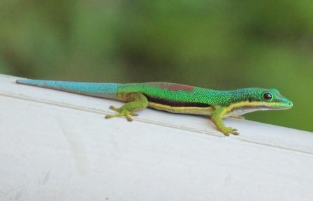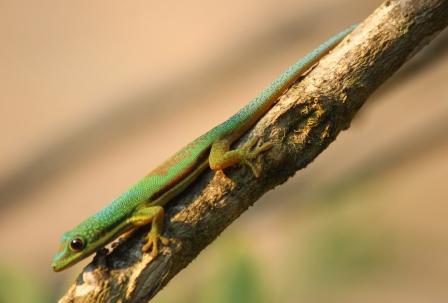 | Gestreepte daggekko / Lined day gecko (Phelsuma lineata) | Madagaskar daggekko / Madagascar Day Gecko (Phelsuma madagascariensis) | ||