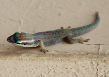 | Mauritius daggekko / Ornate Day Gecko (Phelsuma ornata) | Muurgekko / Common wall gecko (Tarentola mauritanica) |