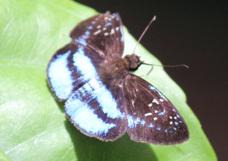 | Blue-banded Skipper (Pythonides herennius) | Blurred Bent-Skipper (Ebrietas evanidus) | ||||||