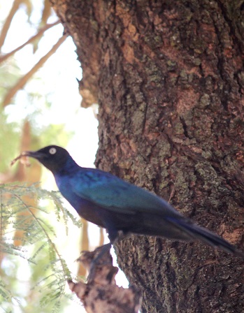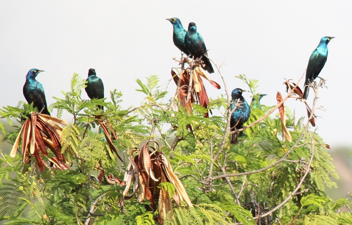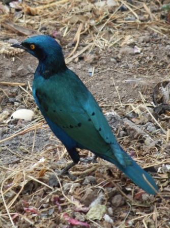 | Noordelijke blauwoorglansspreeuw / Lesser blue-eared starling (Lamprotornis chloropterus) | ||