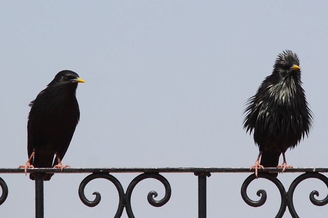 | Witsnavelspreeuw / White-billed Starling (Onychognathus albirostris) | Pagodespreeuw / Brahminy Myna or Brahminy Starling (Sturnia pagodarum) | ||||||||