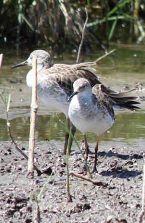 | Breedbekstrandloper / Broad-billed Sandpiper (Limicola falcinellus) | Grijze Strandloper / Semipalmated Sandpiper (Calidris pusilla) | ||||||