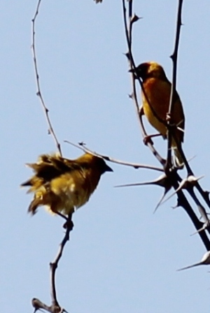 | Witkopbuffelwever / White-headed buffalo weaver (Dinemellia dinemelli) | Rietwever / Norhern Brown-throated Weaver (Ploceus castanops) | ||||||