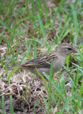 Schubkopwever / Speckle–fronted weaver (Sporopipes frontalis)