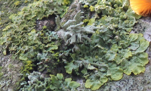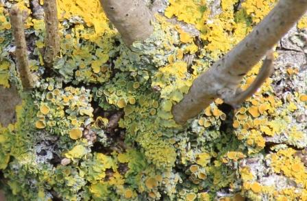 | Klein dooiermos (Xanthoria polycarpa) | Gewoon kusttakmos (Ramalina siliquosa) | |