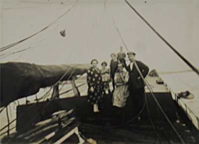 van Coenraad en Boukeline, Jopie,, Trijnie, Willy en Bouk, werden aan boord, of als het zo