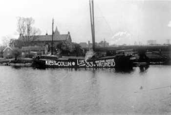 schepen lagen tijdens de crisistijd aan de wal, één schipper