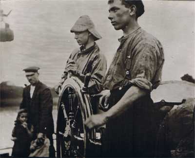 Kieboom (1893 - 1951) en zijn vrouw Boukeline Leutscher voeren op de klipper